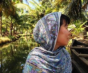 Students on stroll on the Nelson Mandela Walkway, a beautiful tree lined throughway in the heart of the campus.